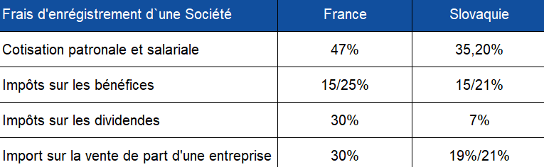La fiscalité du pays est évidemment bien avantageuse que dans d'autrespays d'Europe (cf tableau), mais ce n'est pas la seule raison qui pousse de nombreux investisseurs à rejoindre la Slovaquie.